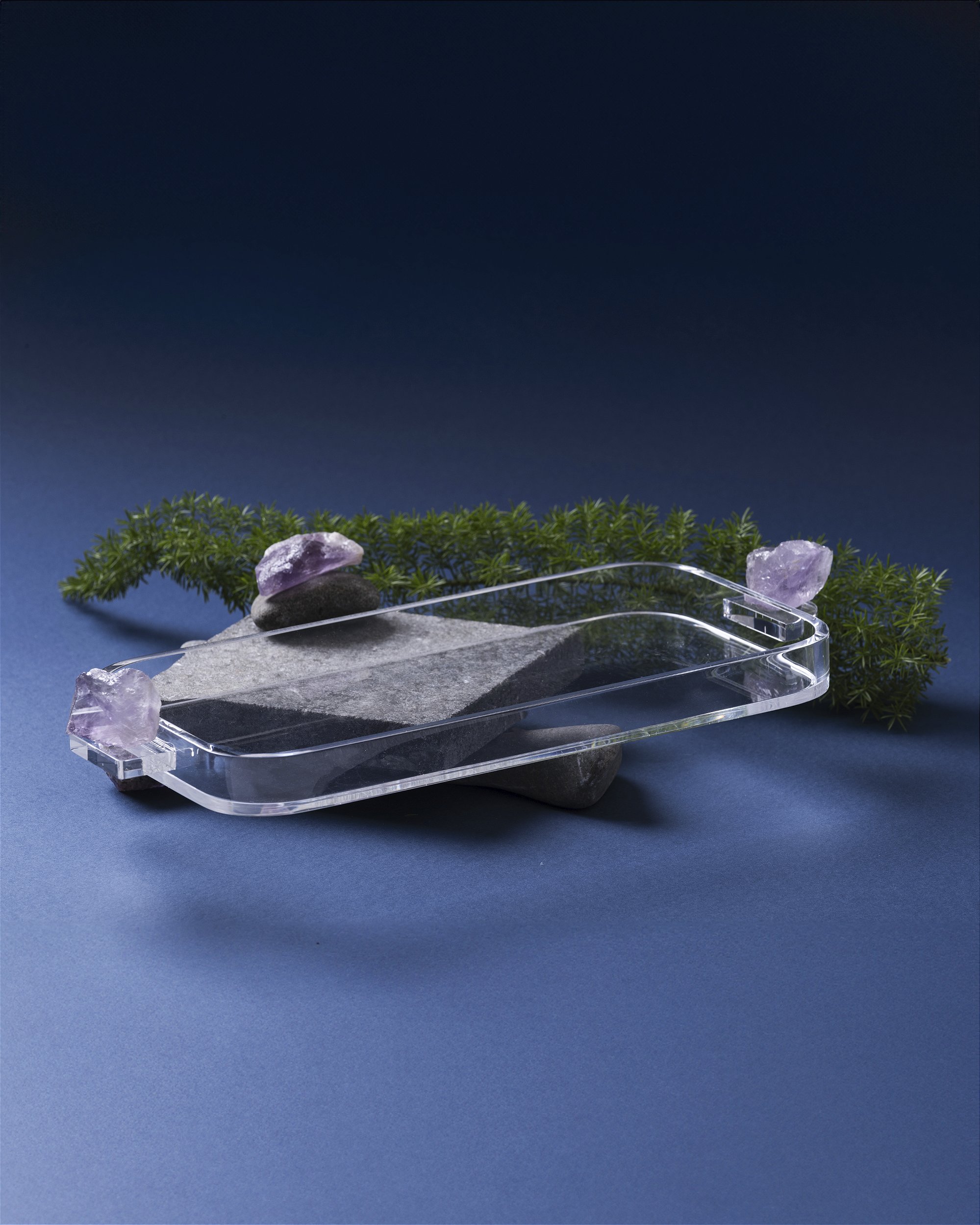 Transforme seu espaço de maneira serena e sofisticada com a Bandeja Be Protect, assinada por Patricia Hagobian. Esta bandeja de acrílico Italiano é resistente e durável, ideal para trazer um toque de elegância ao seu ambiente. Os dois cristais de ametista em cada pegador, reconhecidos por suas propriedades de cura e proteção espiritual, adicionam uma dimensão extra de tranquilidade e equilíbrio, tornando esta bandeja uma peça única e funcional para qualquer ambiente.