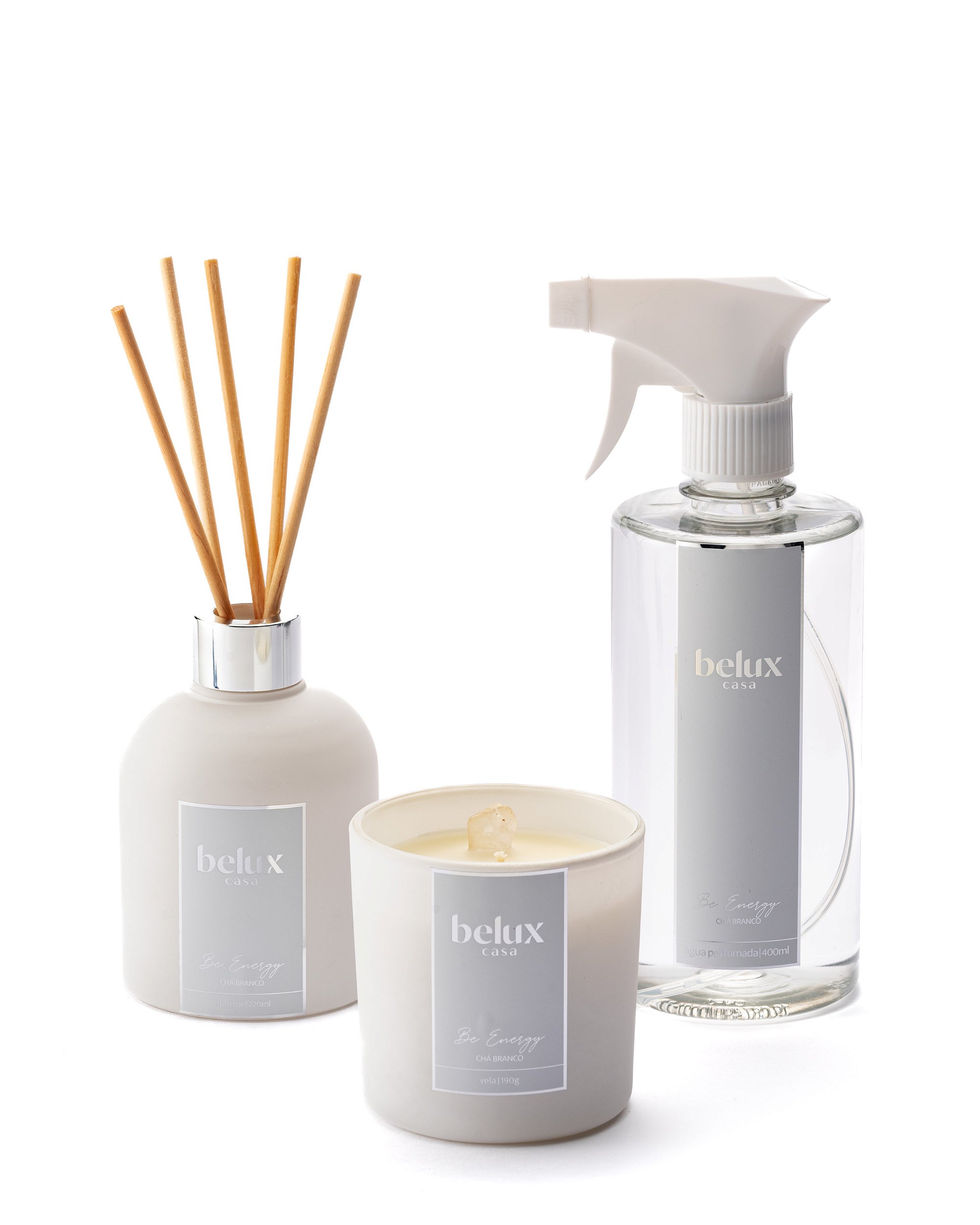 Revitalize seu ambiente com o Kit Be Energy. Este kit acompanha uma vela, um difusor, uma água perfumada, todos com o aroma suave e sofisticado do chá branco. A fragrância proporciona uma sensação de pureza e frescor, criando uma atmosfera de paz e serenidade, ideal para purificar o espaço e manter um ambiente equilibrado e harmonioso, perfeito para momentos de meditação e renovação.